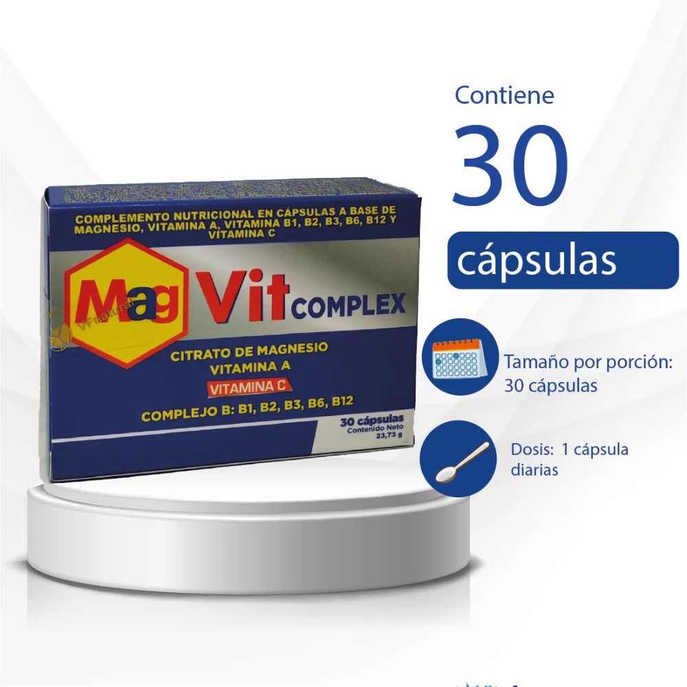 MAG VIT COMPLEX CITRATO DE MAGNESIO + VITAMINA A + COMPLEJO B + VITAMINA C CAJA X 30 CAPSULAS BLISTER