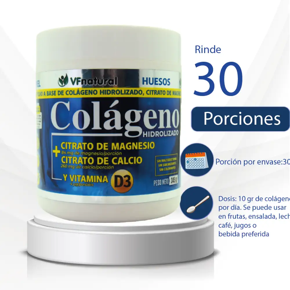 VF NATURAL COLAGENO + CITRATO DE MAGNESIO + CITRATO DE CALCIO + VITAMINA D3 TARRO 345g