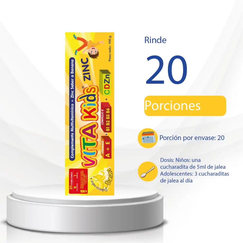 VITAKIDS COMPLEMENTO MULTIVITAMÍNICO MÁS ZINC SABOR A BANANA X 100 G