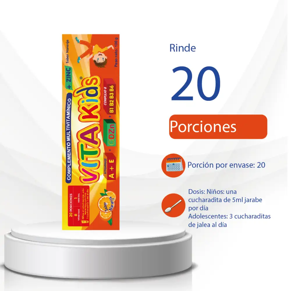 VITAKIDS COMPLEMENTO MULTIVITAMÍNICO MÁS ZINC SABOR A NARANJA X 100g